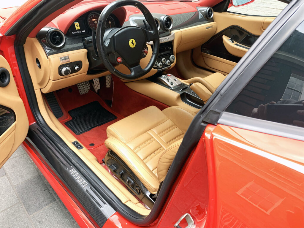 ハイスペックのフェラーリ599GTB。完全に拡張されたベージュレザーのロッソコルサ。2009年1月にサウジアラビアで新しく供給されました。メインディーラーは2016年までサービスを提供しました。2017年に英国に輸入され、英国の1人の所有者に販売されました。